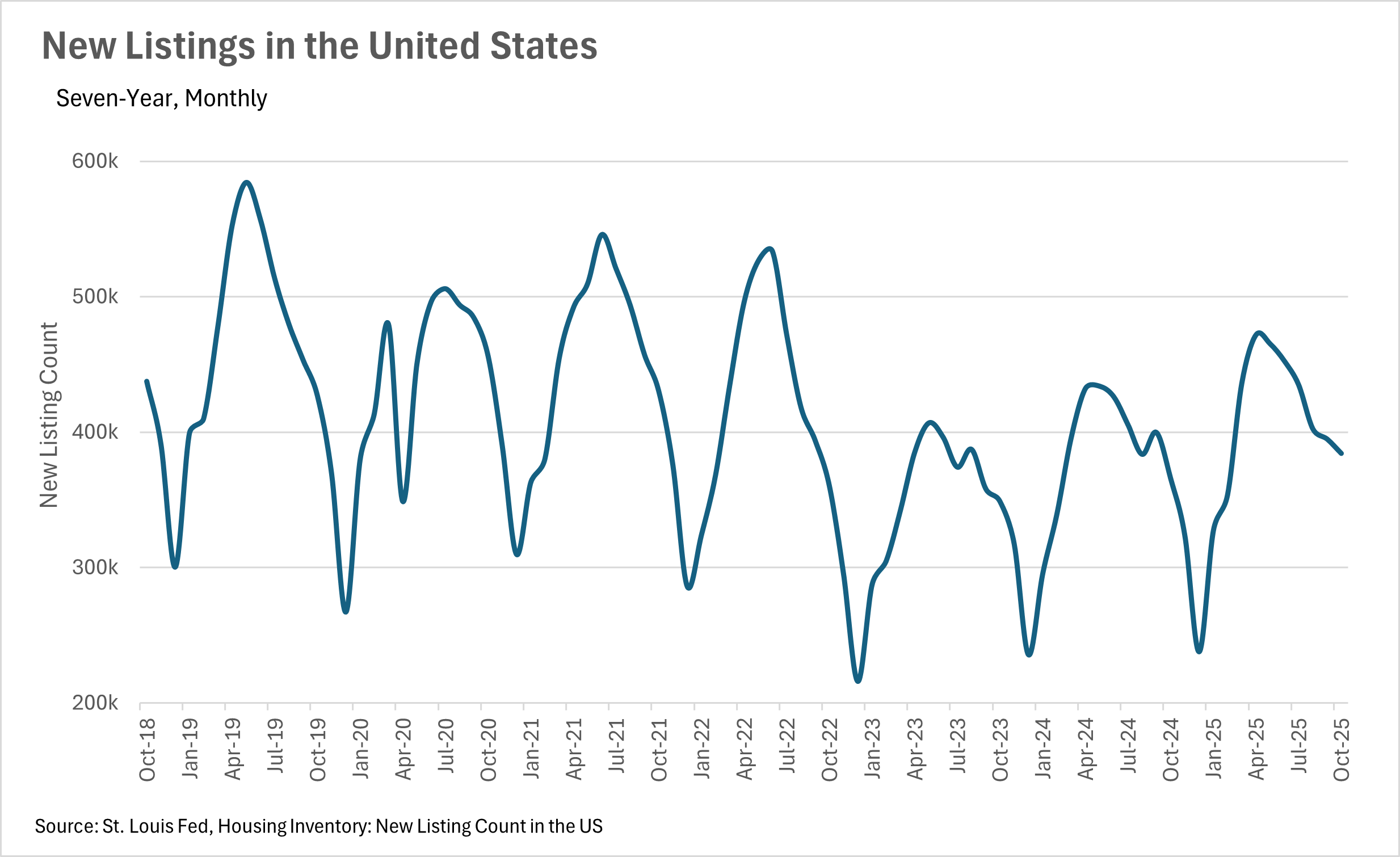 Median monthly P&I payments are on the decline, as one might expect when interest rates are falling. This, of course, is great for new buyers that are in the market for a home. If we see an influx of new buyers, there is the possibility that we might see a less stagnant market when the spring time rush comes in early 2026. Unfortunately though, interest rates are still much too high for many people who locked in rates in the 2-3% range to justify moving to a new home and taking on a considerably higher mortgage payment each month. We likely won’t see these homes/homeowners enter the market until rates come down substantially more than they already have.