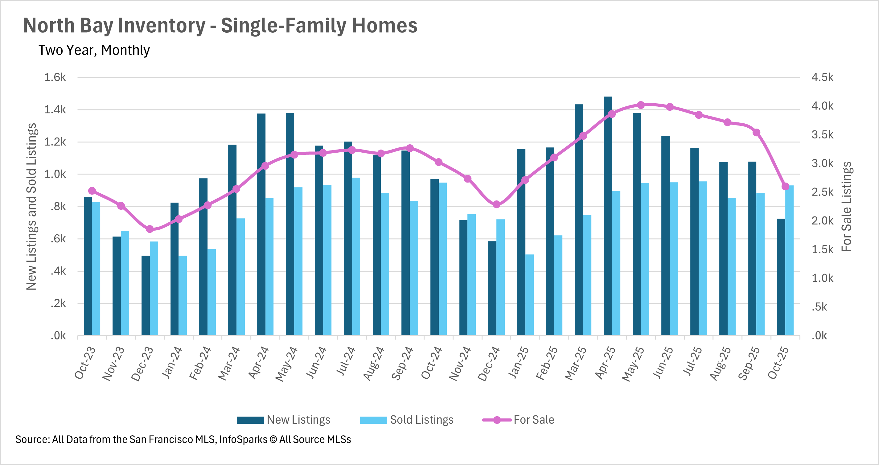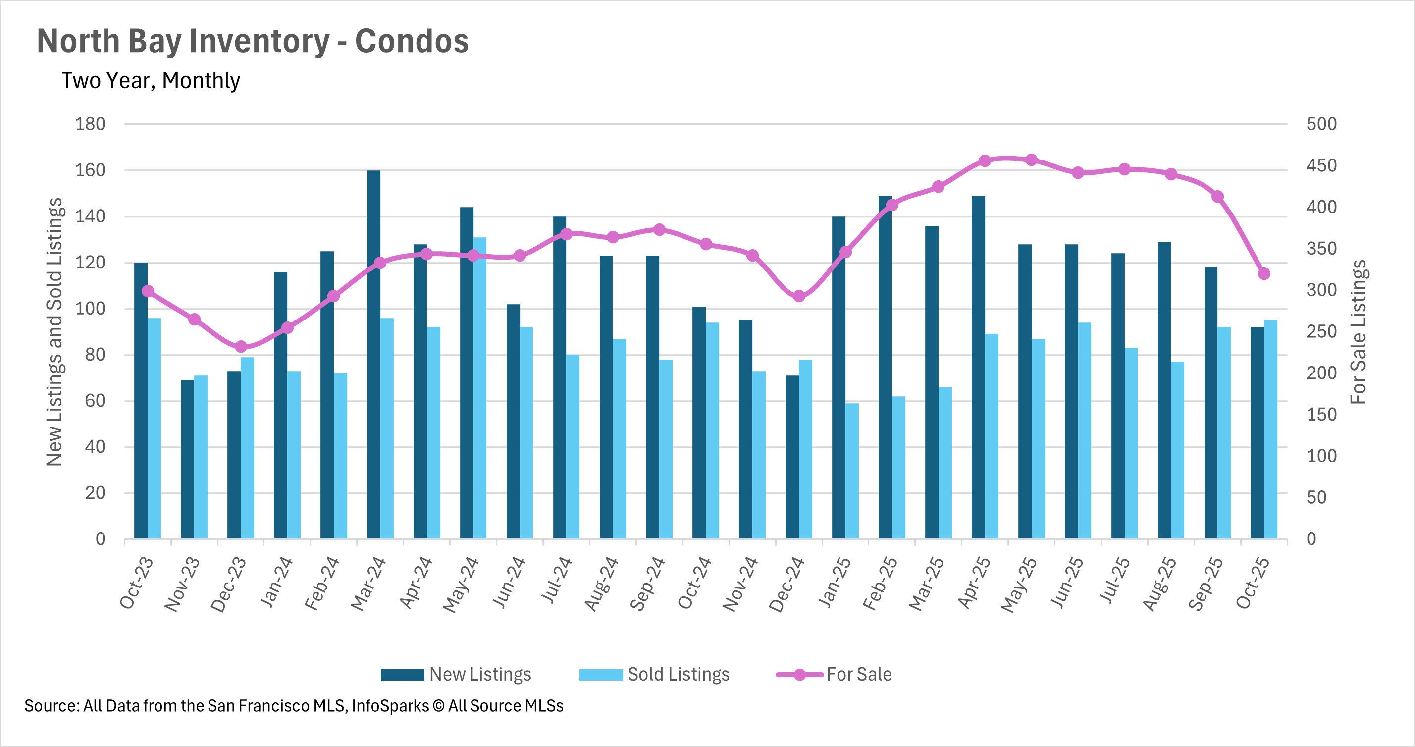 • The North Bay has seen inventories crater on a year-over-year basis, as considerably fewer homes hit the market.