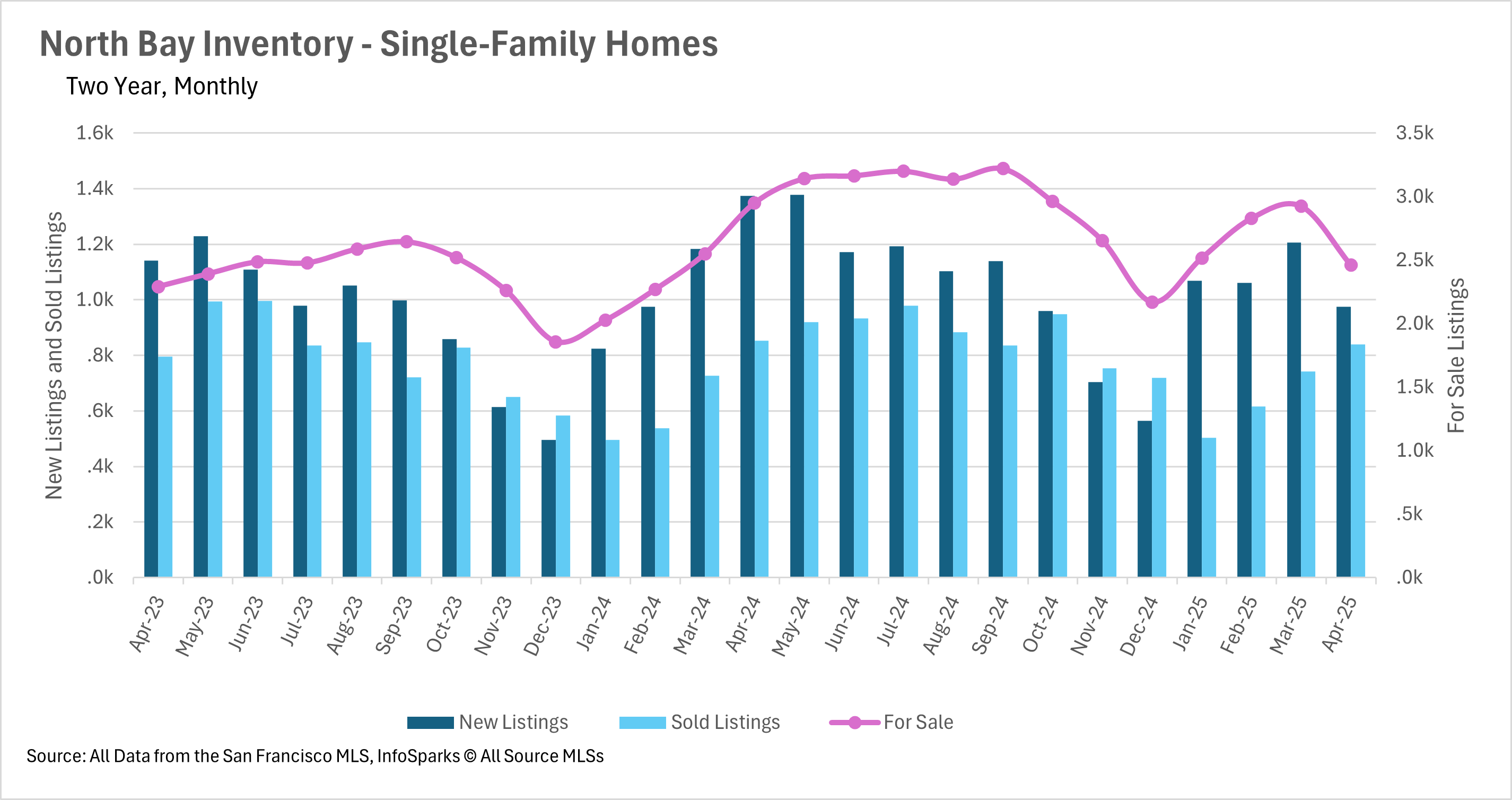 On the bright side, mortgage rates have continued their slow descent, with the average interest rate on a 30-year mortgage in March coming in at around 6.63%, down roughly a quarter point from the year prior. As you might expect, the median monthly P&I payment ticked down slightly, and the median sale price ticked up slightly to match this move.